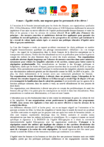 8 mars : Égalité réelle, une urgence pour les personnels et les élèves ! · communiqué intersyndical