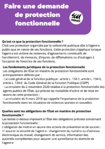 C’est une protection organisée par la collectivité publique dûe à l’agent·e public·que en raison de ses fonctions. Cette protection s’applique lorsque l’agent·e est victime de violences, d’agissements constitutifs de harcèlement, de menaces, d’injures, de diffamations ou d’outrages à l’occasion de l’exercice de ses fonctions.