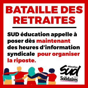 Face à l'attaque du gouvernement sur nos retraites, il faut nous défendre. SUD éducation appelle les personnels à se réunir en heure d'information syndicale pour préparer la grève et ses suites.