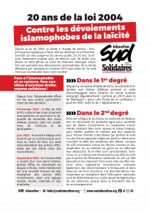 Depuis la loi de 2004, la laïcité a changé de nature : d’un principe qui s’applique à l’État, elle est devenue un instrument coercitif sur des usager·es du service public. En 20 ans, la loi aura finalement imposé plus de devoirs que de droits aux élèves. Et cette dérive ne cesse de s’étendre. Blanquer s’était fait une spécialité des dévoiements islamophobes de la laïcité, déclarant par exemple en octobre 2019 que selon lui “le voile n’est pas souhaitable dans notre société”.